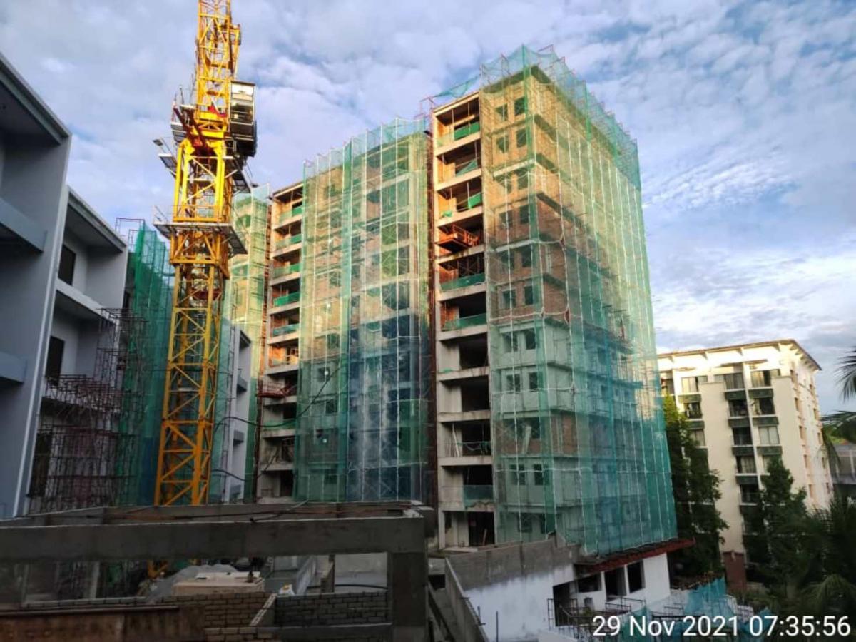 Painting works on the external walls of Block A is ongoing. The gym & sauna block is currently underway with the brick works in progress too. Water proofing works for the courtyard, the planter boxes and half Olympic size pool are progressing well. Landscaping works is targetted to commence in December 2021. Getting additional workers remains the main obstacle of the main contractor and its subcontractors with nationwide shortage.