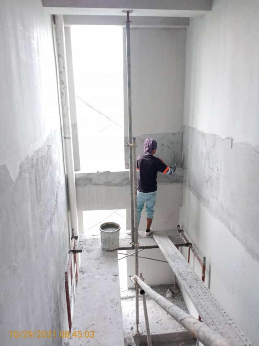 Klang Valley have moved to Phase 4 of the National Recovery Plan on 18th October 2021. The roof water proofing and water tightness test for Block A is currently underway. The internal and external wall plastering works of both the Blocks are in progress. Lift cars and lift motor installation for Block A in progress while in Block B, setting out works for installation is ongoing. Tiles and timber flooring works for the units have commenced.